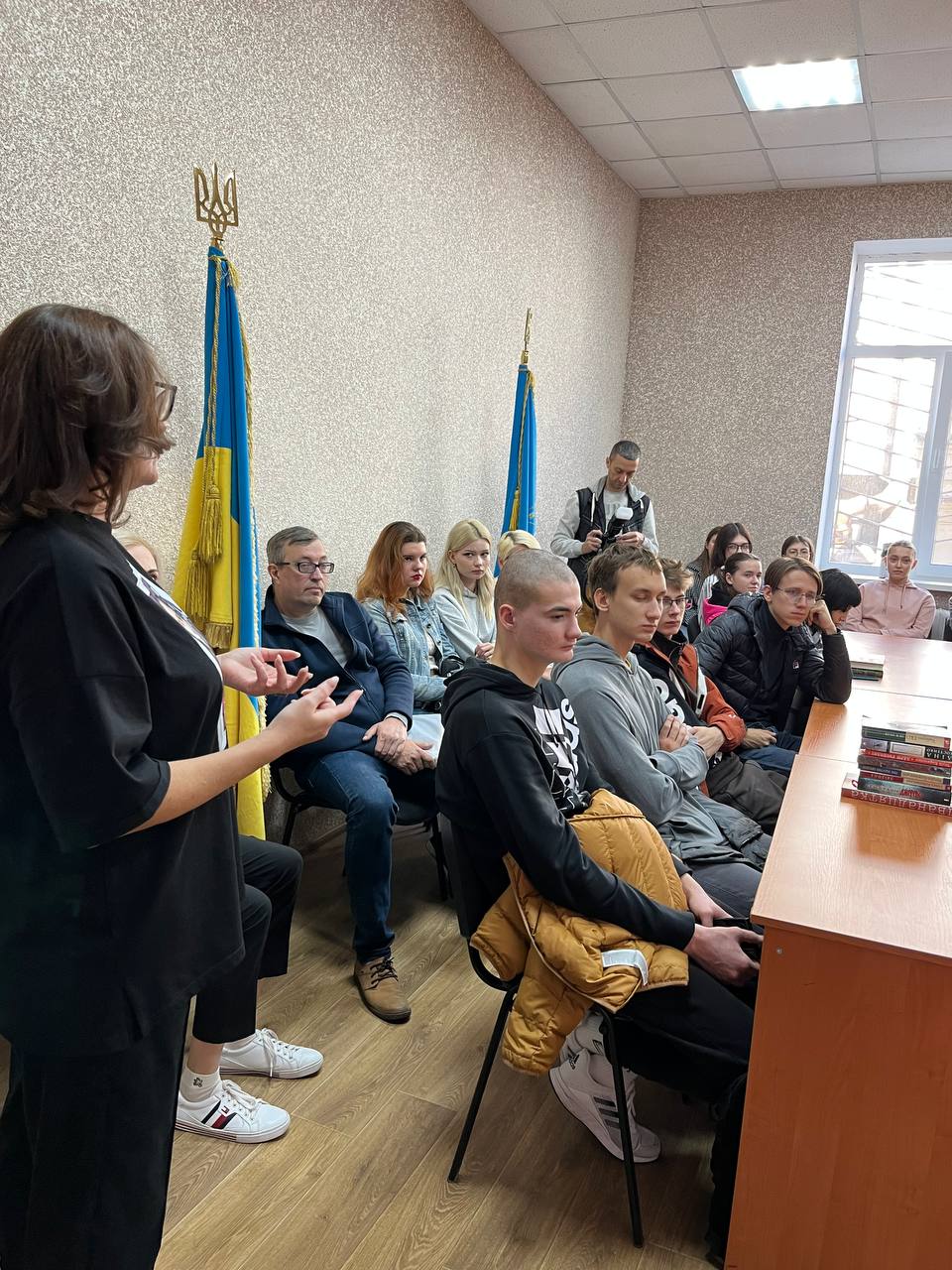 25 вересня у ННІ ПДАБА викладачі кафедри УДІД за організаційної підтримки відділу з виховної роботи зі студентами УДУНТ провели цікавий просвітницький захід «Книжковий вайб». Захід, приурочений до Всеукраїнського дня бібліотек, що відзначається 30 вересня, об’єднав любителів літератури навколо благородної мети – поповнення бібліотечного фонду та популяризації читання серед студентської спільноти. Особлива атмосфера тепла та творчості, де кожен учасник мав можливість поділитися своїми літературними вподобаннями, створена організаторами, сприяла захопленому сприйняттю різноманітної програми, що поєднала теплі розмови з читанням уривків з улюблених творів, творчі виступи студентів та декламування власних віршів.
