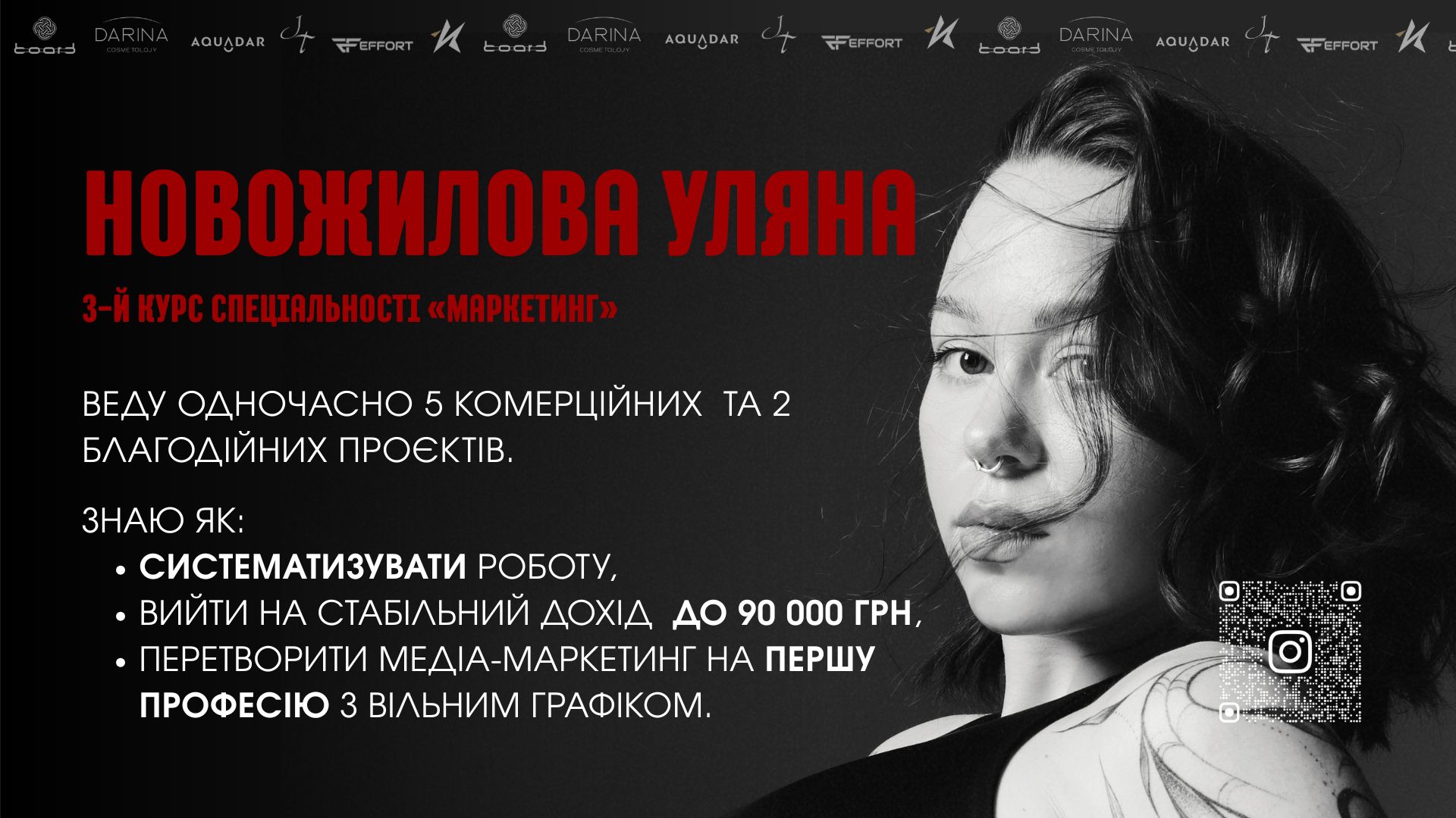 У рамках освітньо-професійних заходів для студентів відбулася лекція на тему «Твоя перша професія», яку підготувала та провела студентка 3 курсу спеціальності «Маркетинг» групи МАГ-23 – Уляна Новожилова.