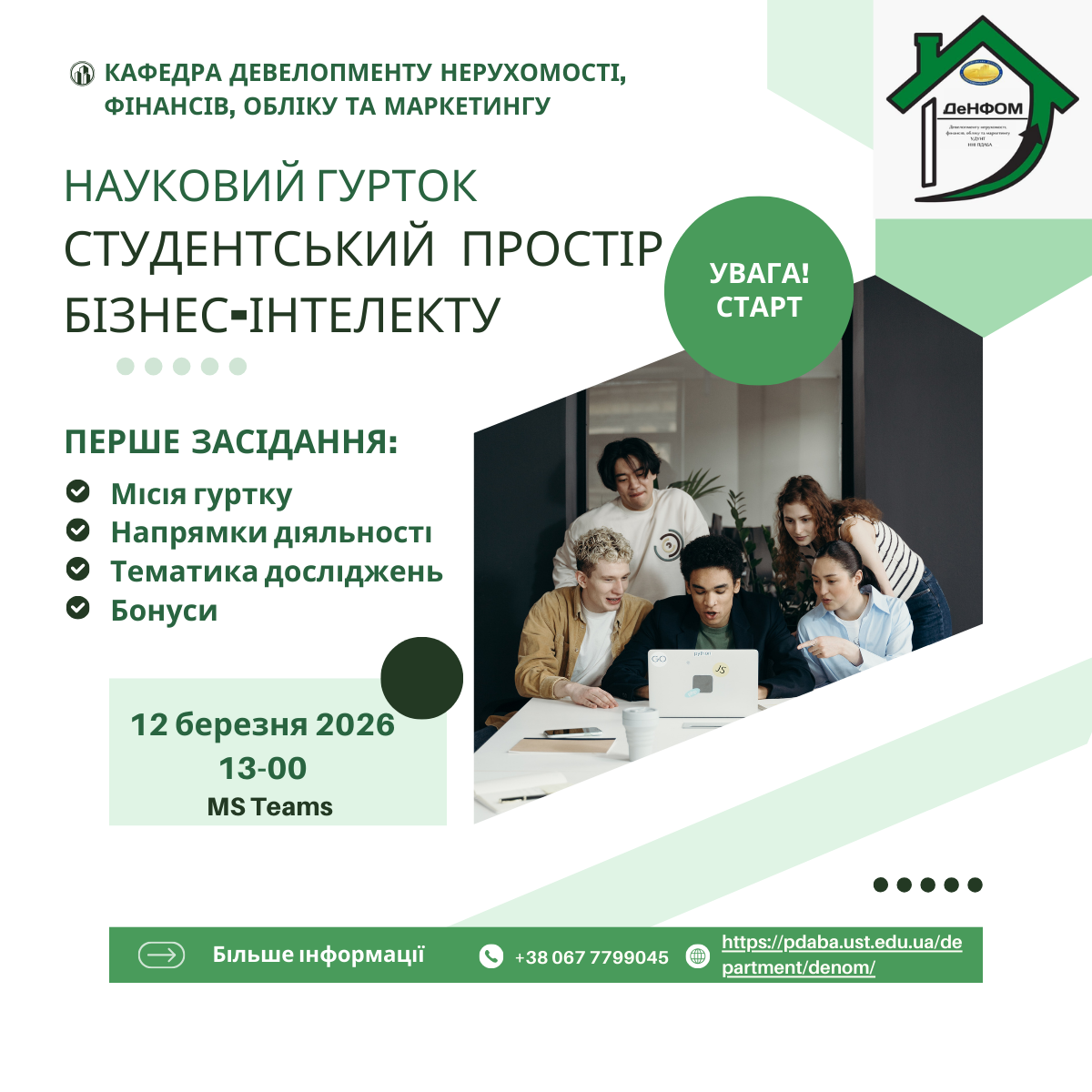 12 березня 2026 року на кафедрі девелопменту нерухомості, фінансів, обліку та маркетингу відбулося перше засідання нового наукового гуртка. Це місце, де дані перетворюються на реальні можливості для кар’єрного зростання.