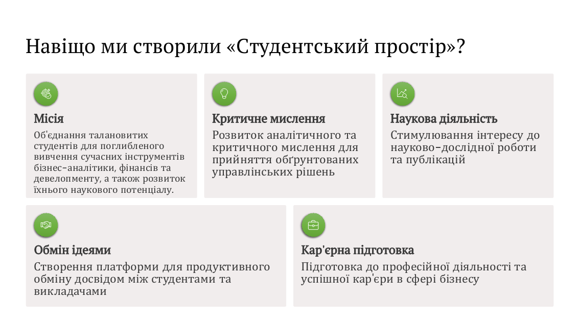 Керівник гуртка, доцент Наталія Свічкар, презентувала місію проєкту. Гурток покликаний навчити студентів приймати рішення на основі даних, працювати з реальними кейсами у сфері девелопменту та маркетингу, а також розвивати критичне мислення. Учасники дізналися про переваги: від публікацій у фахових виданнях до додаткових балів у рейтингу успішності та якісного портфоліо для роботодавців.
