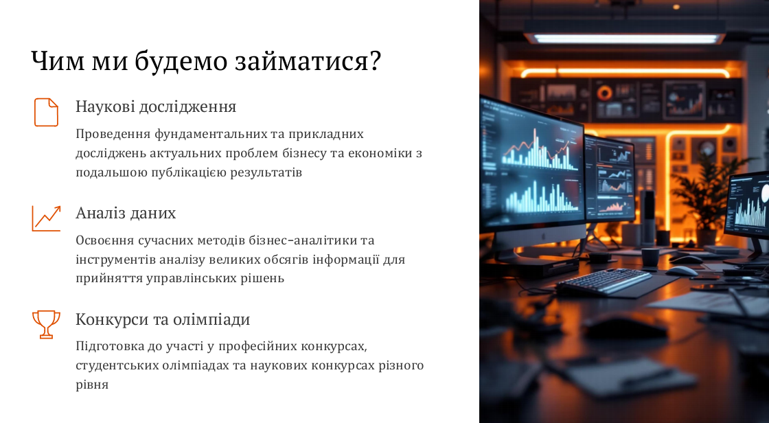 У світі, де цифри щодня формують економіку, бізнес і розвиток територій, надзвичайно важливо вміти бачити за показниками тенденції, ризики та можливості. Саме з цією метою створено наш гурток – як простір наукового пошуку, професійного зростання й інтелектуального діалогу.