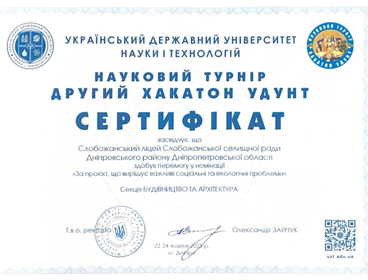 Організатори подбали про мотивацію учасників і підготували призи переможцям. Від кафедри «Автомобільні догори геодезія та землеустрій» ментором був к.е.н. доцент Кульбака Віктор Михайлович, проект розробляли учні Слобожанського ліцею Слобожанської селищної ради Дніпровського району Дніпропетровської області, тема проєкту: «Просторовий розвиток Слобожанської об’єднаної територіальної громади».