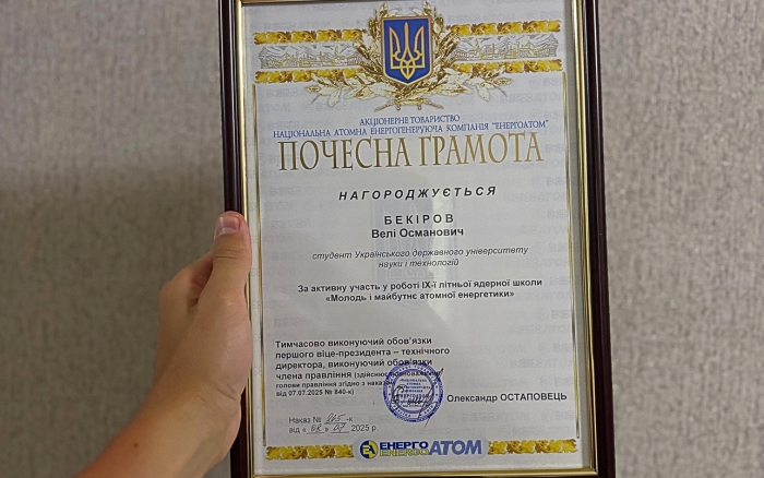 Представники провідних вишів країни у конкурсі наукових робіт представили потужні та актуальні наукові проєкти, та перемогу здобув студент УДУНТ Бекіров Велі Османович! Його робота була високо оцінена експертами, а перемогу супроводжувала почесна грамота та грошова відзнака від АТ «НАЕК «Енергоатом».