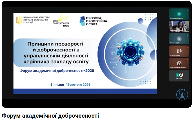 19 лютого 2026 року представники ННІ «Придніпровська державна академія будівництва та архітектури» долучилися до масштабної професійної події – Форуму академічної доброчесності 2026: нові правила – нові можливості для освіти. Захід, організований Вінницьким технічним фаховим коледжем та ГО «Прогресильні», об’єднав експертів НАЗЯВО, НАЗК, представників бізнесу, ІТ-сектора та міжнародних фахівців для обговорення практичного впровадження Закону України «Про академічну доброчесність» та майбутнього української освіти в умовах цифровізації.